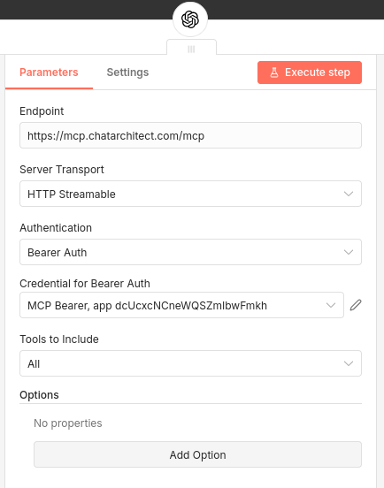 After configuration, MCP will be available as a tool inside your workflow.